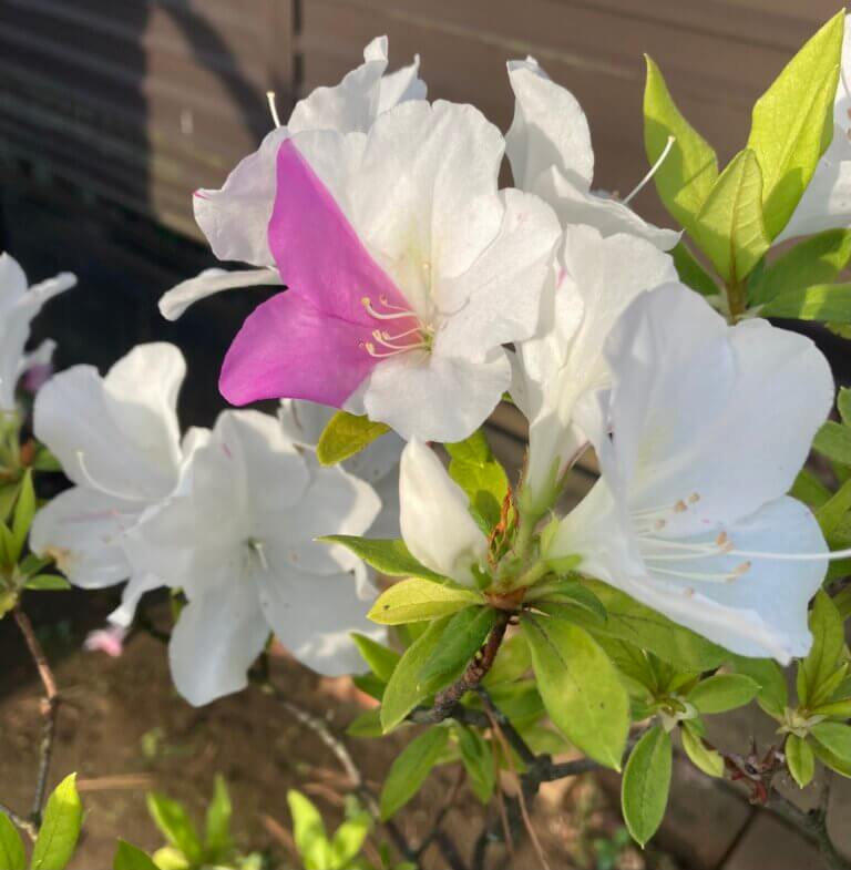 それから白ツツジのエリアにピンク色が混じった花が咲きました。