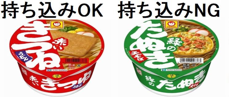 ということで、小腹空き対策にハワイへの持ち込みが可能なカップ麺、「どん兵衛きつねうどん」や「どん兵衛天ぷらそば」、「赤いきつねうどん」などを持っていく人もいる。これらは肉エキスを使用していないため、比較的安心して持って行くことが出来る。また、一方で、「緑のたぬき天そば」は豚肉成分を含むためアメリカに持ち込み不可。カップヌードルやカップラーメンはスープに肉エキスが使用されているためNG。カップヌードル シーフードヌードルなら大丈夫かと思って調べてみると原材料/成分に「ポーク調味料」との記載があるので、やはりハワイに持ち込み不可となる。