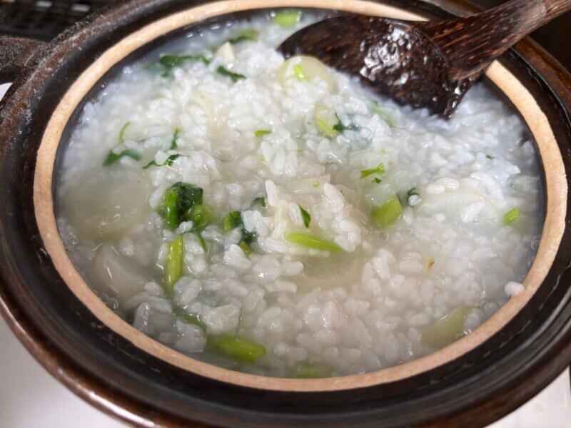 ということで、今朝は伊賀焼の土鍋で「七草粥」を炊いて食べた。