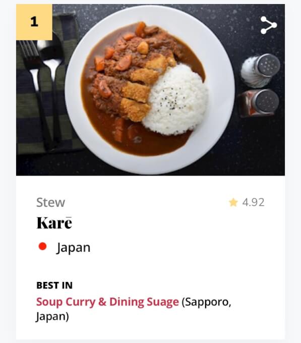 伝統的な料理に関する体験型旅行サイト「Taste Atlas」は、「Best Traditional Food in the World 世界の伝統料理ランキング(世界最高の伝統料理)」のトップ100を発表。このランキングで日本の「カレー」が1位に輝いた。ランキングは以下の通り。