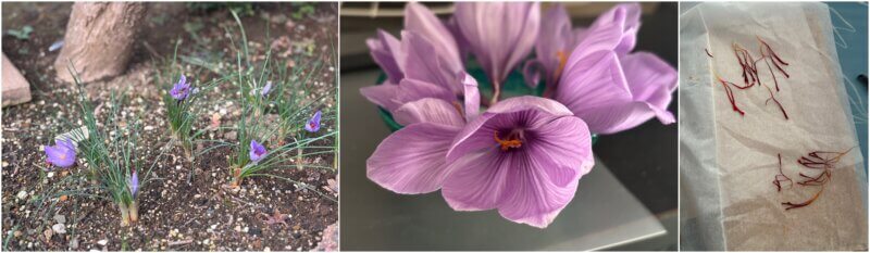 今回使用した自家製の食材はこちら。庭に咲いたサフランの花から取り出した雌しべを乾燥させたもの。