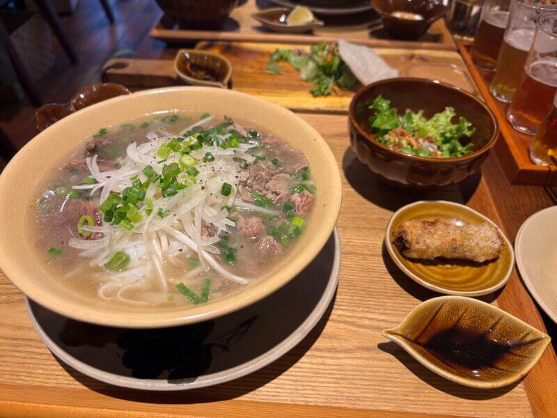 またこのベトナムのおつまみたちが絶品だった。生春巻きは言わずもがな、エビのすり身レモングラス、エビの揚げ春巻き、ベトナムハム、えびせんなど、どれを食べても外れない美味しさ。