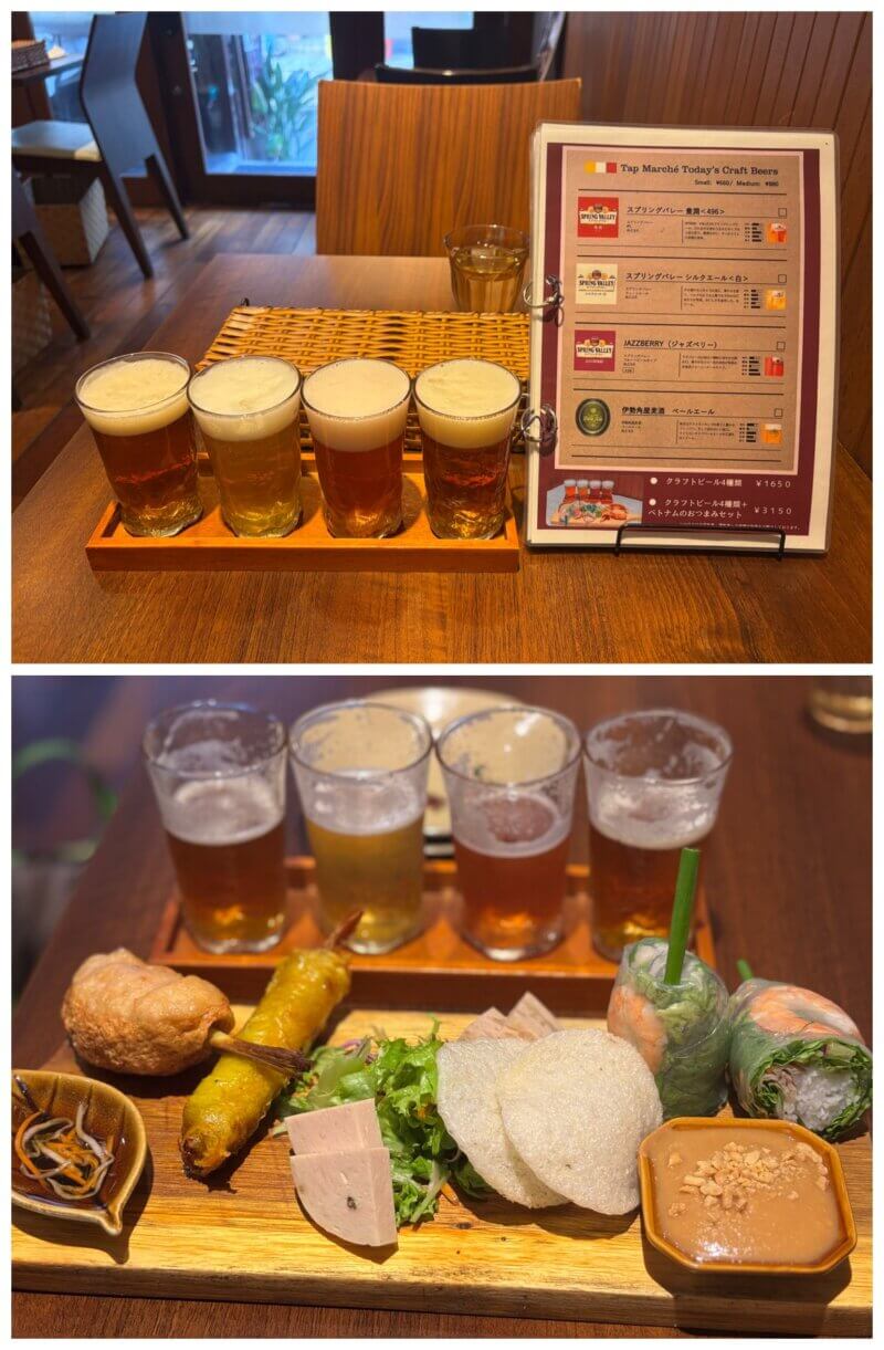 ふとメニューをみると、クラフトビール4種類+ベトナムのおつまみセットがあったので、まずはこれを頼んで娘を待つことに。