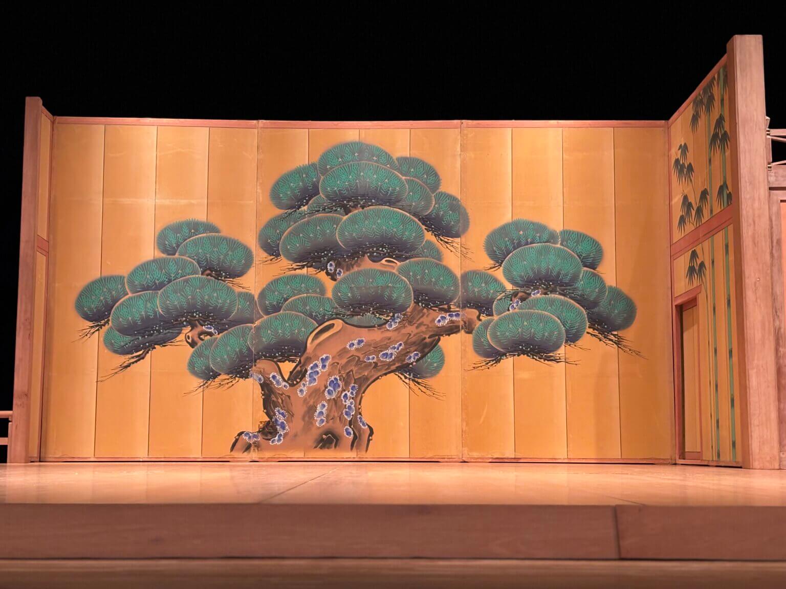ご覧のアングル…能舞台の松が正面にみえる位置の最前列で、演者の息遣いや表情がハッキリ見えて、娘①と共に大感激の鑑賞となった。
