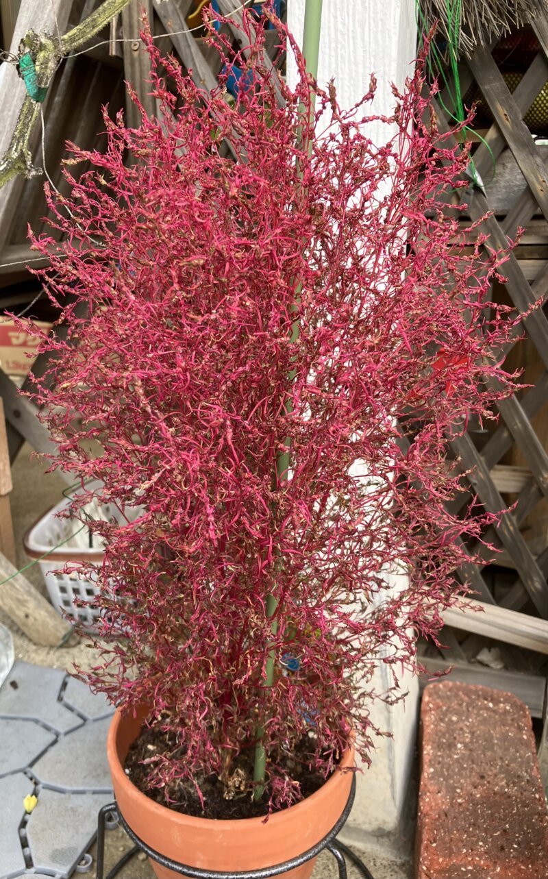 先日紅葉し始めたコキアがまた更に赤みを増してきました。