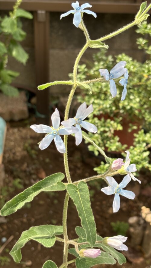 秋麗の頃、庭の片隅にひっそりと咲くブルースター。