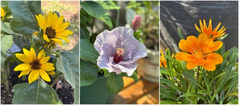 かと思えば、多花性のヒマワリや、くすみカラーのハイビスカス、オレンジ色のガザニアたちは、まだまだ夏の余韻を愉しむように咲いている。
