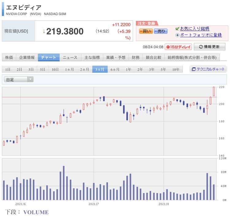 ここはもうこれ以上欲をかかず1株売ってこのところ勢いのあるNVIDIAを買い増すことにした。