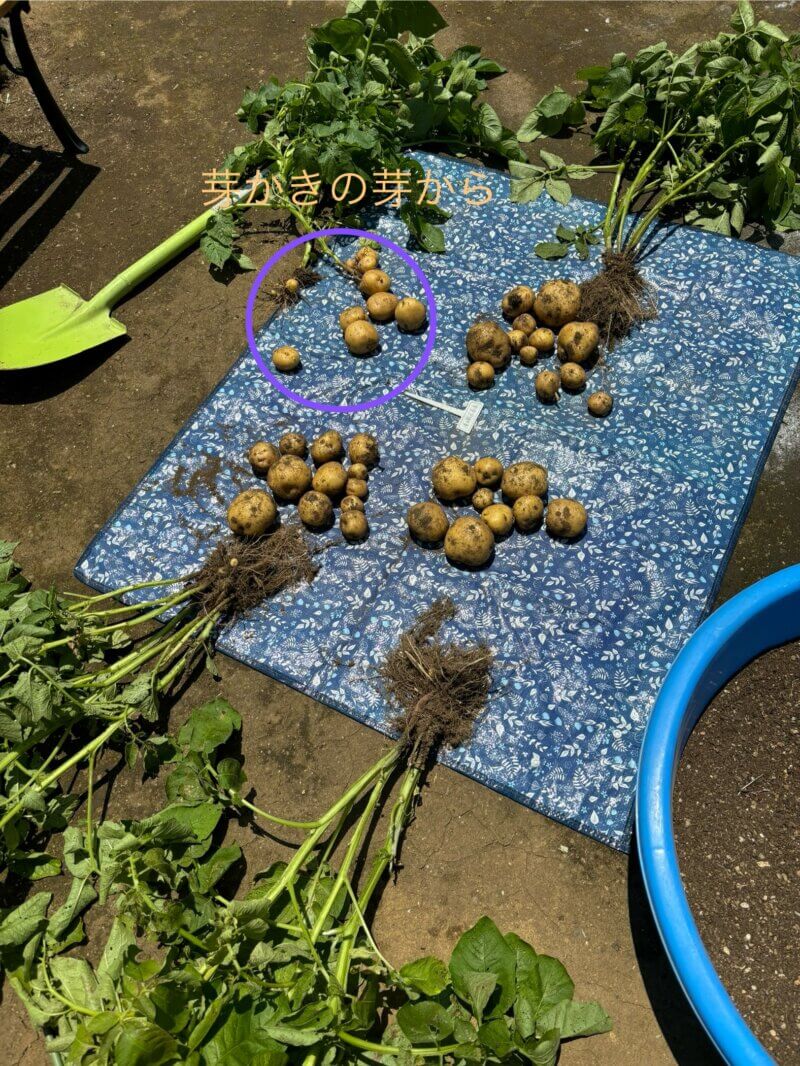 種芋は、ホームセンターで購入したものではなく、Oisixで購入したキタアカリをあえて芽が出るまで放置したものです。3個の種芋から大小合わせてそれぞれ10個ほど収穫出来ました。芽かきをした時の元気そうな芽を試しに植えてみた分も、多少小ぶりですが、まあまあの大きさのものが出来ました。重さを量ってみると大体3kg弱ぐらいになりました。