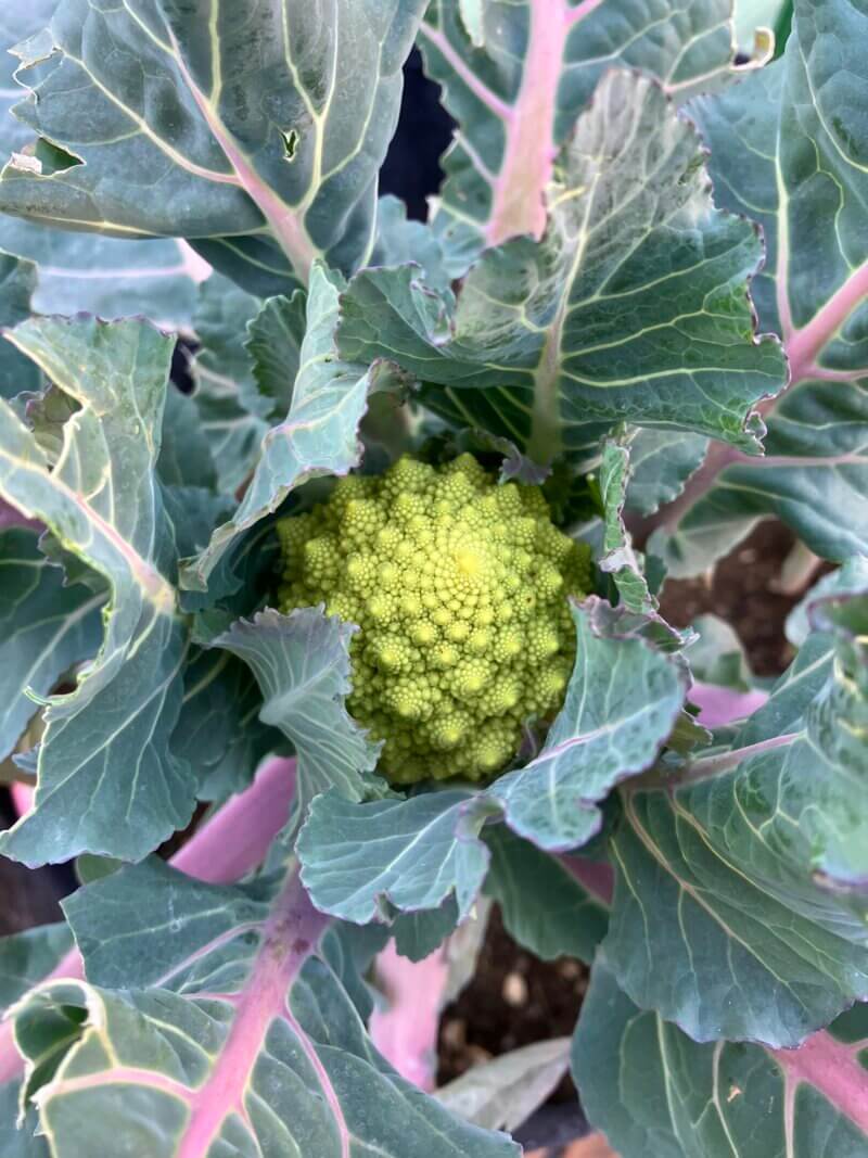 ところで去年から育てているロマネスコの収穫が近づいてきています。なんて美しい花蕾なんでしょう。