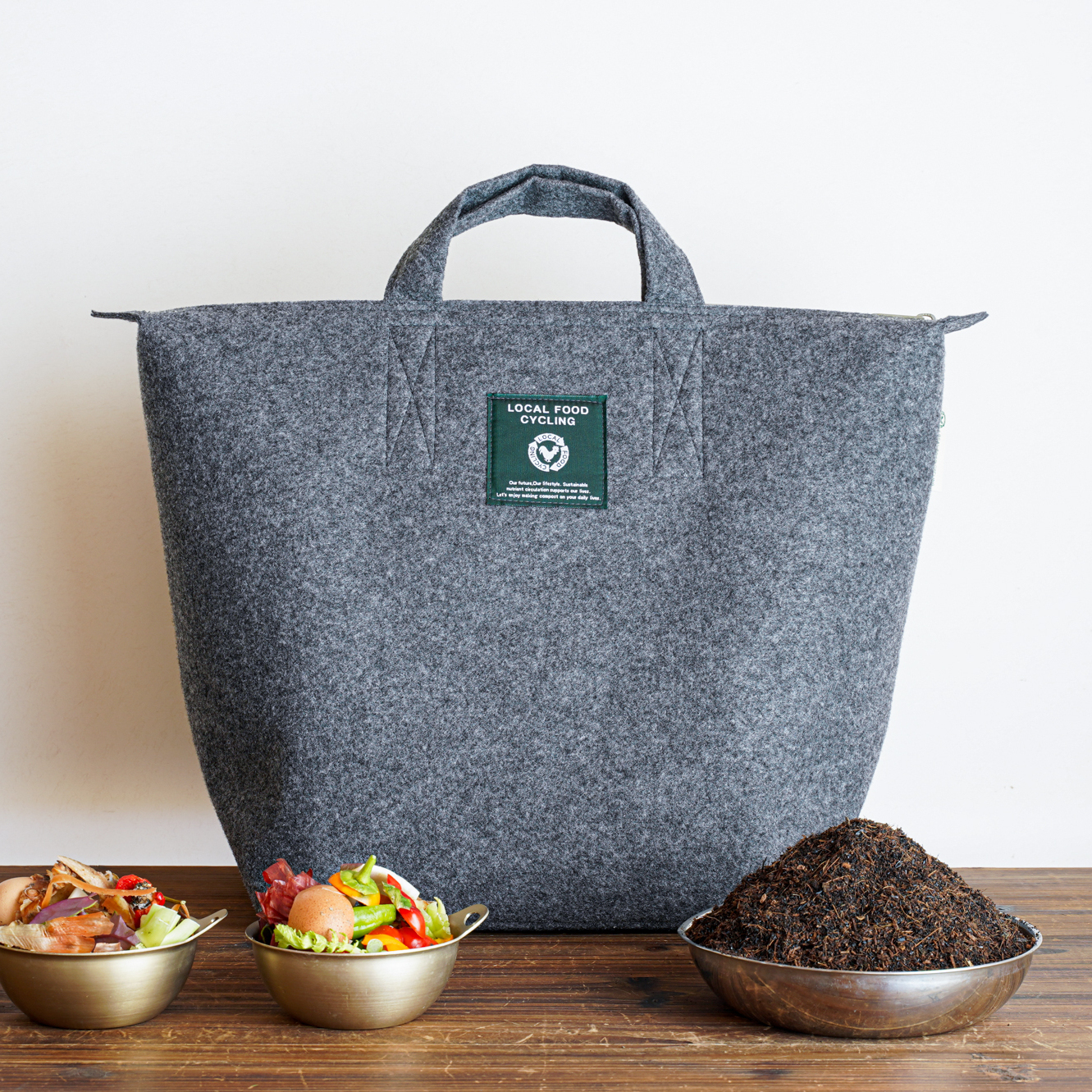こちらのトートバックに内袋と専用の基材を入れ、約2か月間生ゴミを投入し、3週間ほど熟成させると美味しい野菜を作るための堆肥が出来るのです。