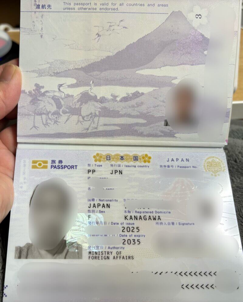 ホンモノの旅券なので、“ぼかし“入れまくりだが、こんな感じのパスポートをゲットした。