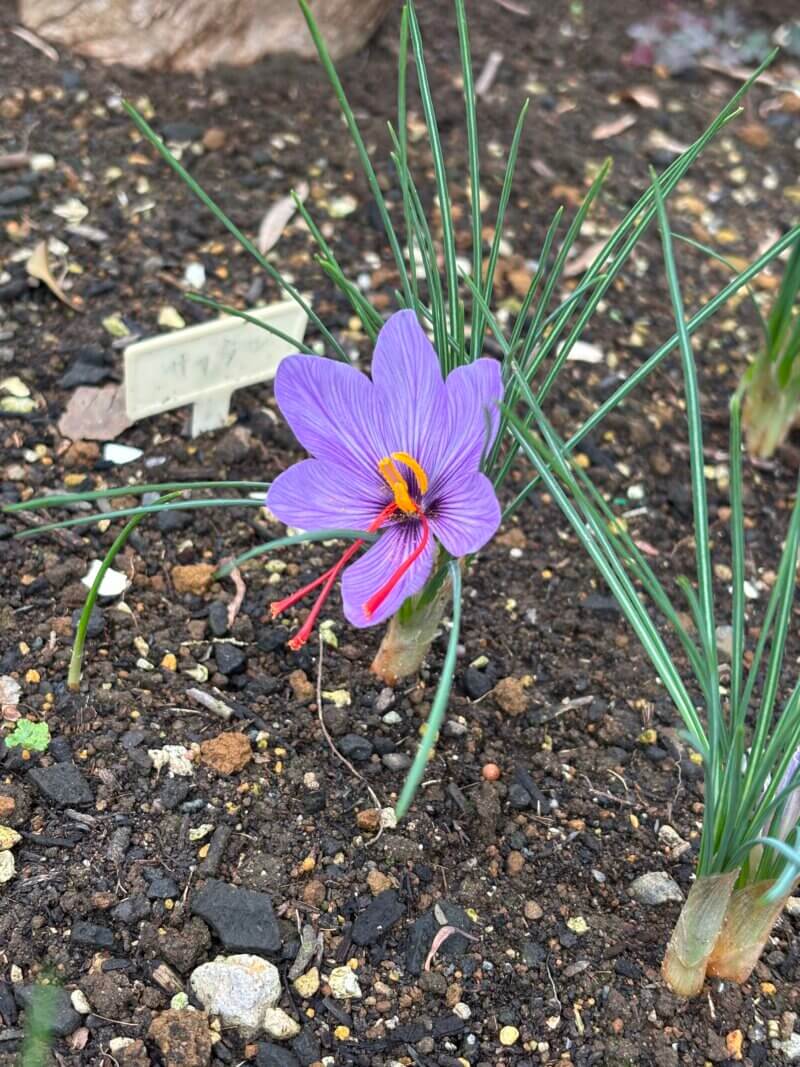 そういえば庭のサフランがいつのまにか咲いていた♪パエリアやブイヤベースに使うのは、この赤い雌しべの部分。これをひとつひとつ手作業で取り出して乾燥させて使うのだから、高価なのも仕方ない。